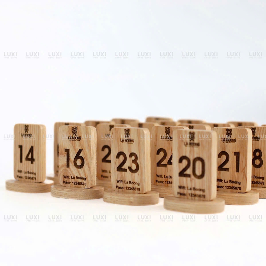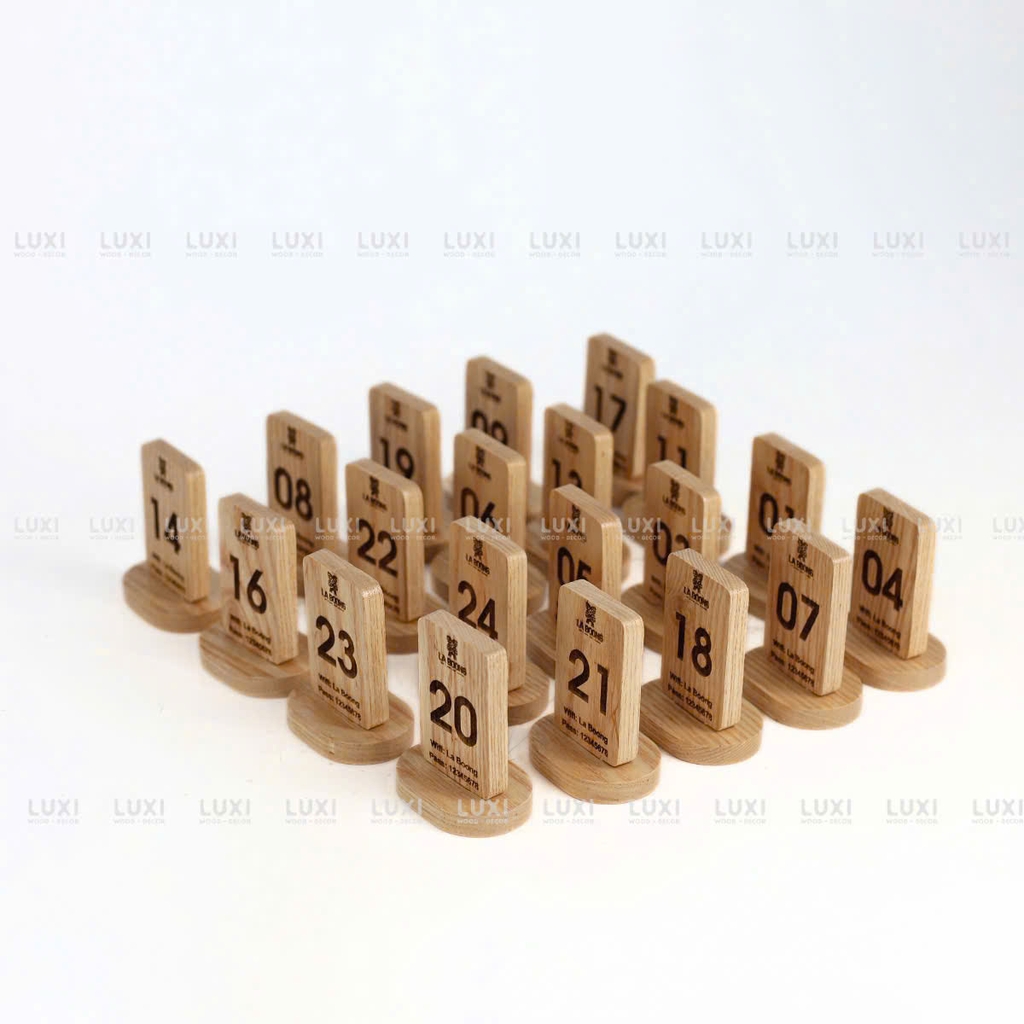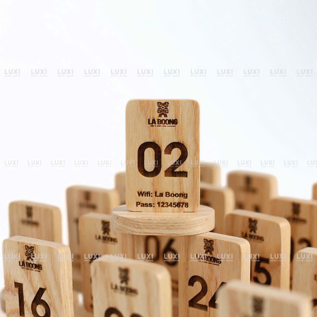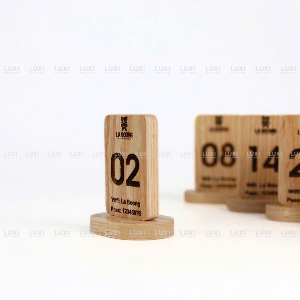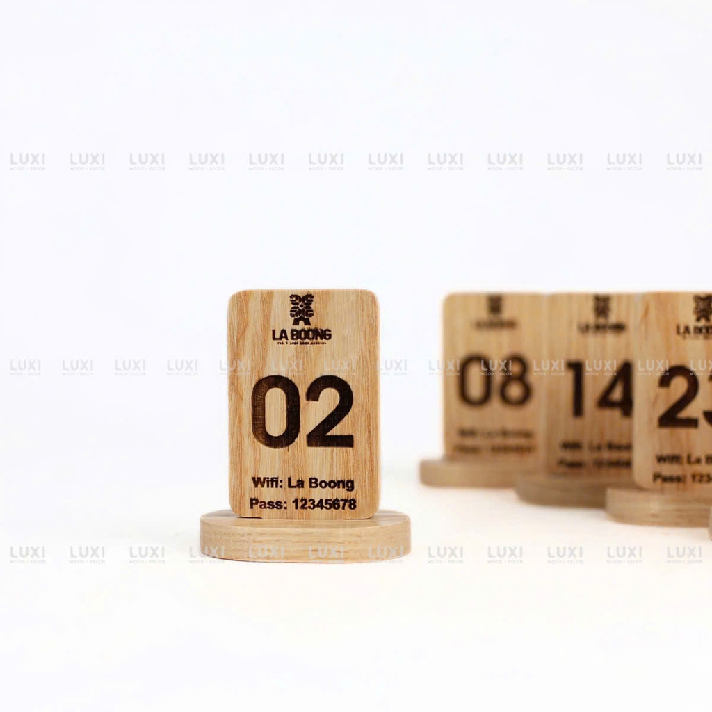 Thẻ bàn chữ nhật đế tròn dùng trong quán café, nhà hàng, spa, quán ăn… để hiển thị số bàn, menu, QR code hoặc thông tin dịch vụ.
